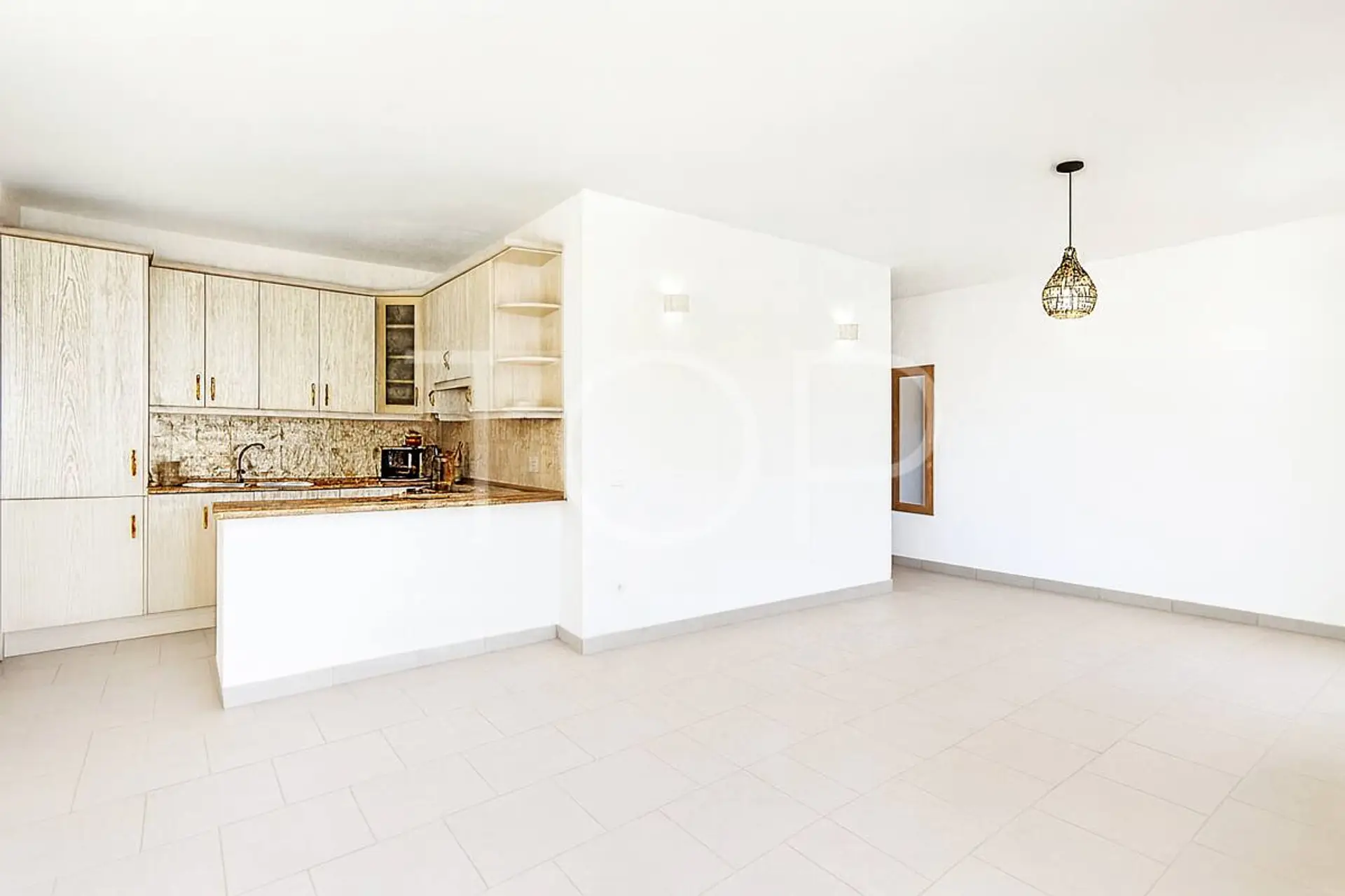 Der elegante Wohn- und Essbereich mit direktem Zugang zur oberen Terrasse schafft fließende Übergänge zwischen Innen- und Außenraum – ideal, um den Blick über die Küste schon beim Frühstück oder bei einem Glas Wein am Abend zu genießen. Die funktional gestaltete Küche fügt sich stilvoll in das Wohnkonzept ein.