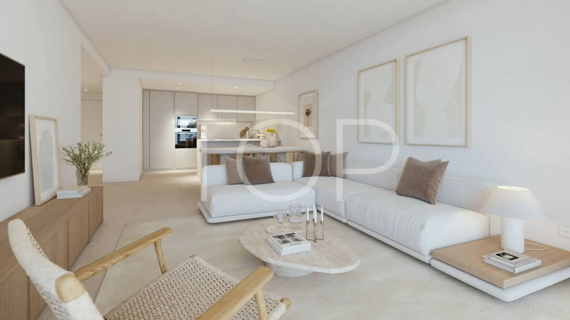 Dieses elegante Apartment verfügt über ein großzügiges Wohnzimmer mit integrierter Küche, das darauf ausgelegt ist, das natürliche Licht optimal zu nutzen und eine perfekte Verbindung zum Außenbereich herzustellen. Die private Terrasse von über 20 m² ist ideal, um sich zu entspannen und die Umgebung zu genießen.