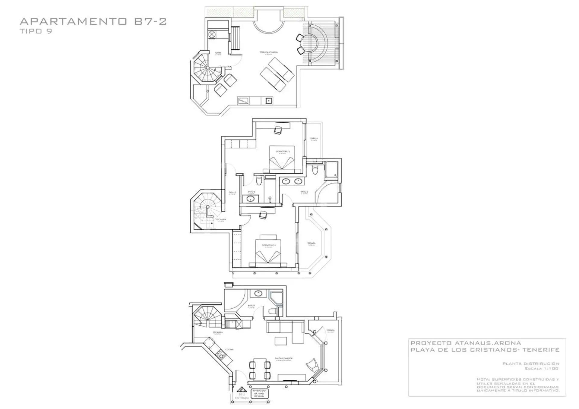 Wir bieten Ihnen die exklusive Gelegenheit, ein geräumiges Triplex-Apartment mit zwei Schlafzimmern zu erwerben, das sich über den ersten, zweiten und dritten Stock eines gut positionierten Gebäudes in einer unvergleichlichen Lage befindet, nur wenige Schritte von den wichtigsten Dienstleistungen und den beliebtesten Stränden von Los Cristianos entfernt.