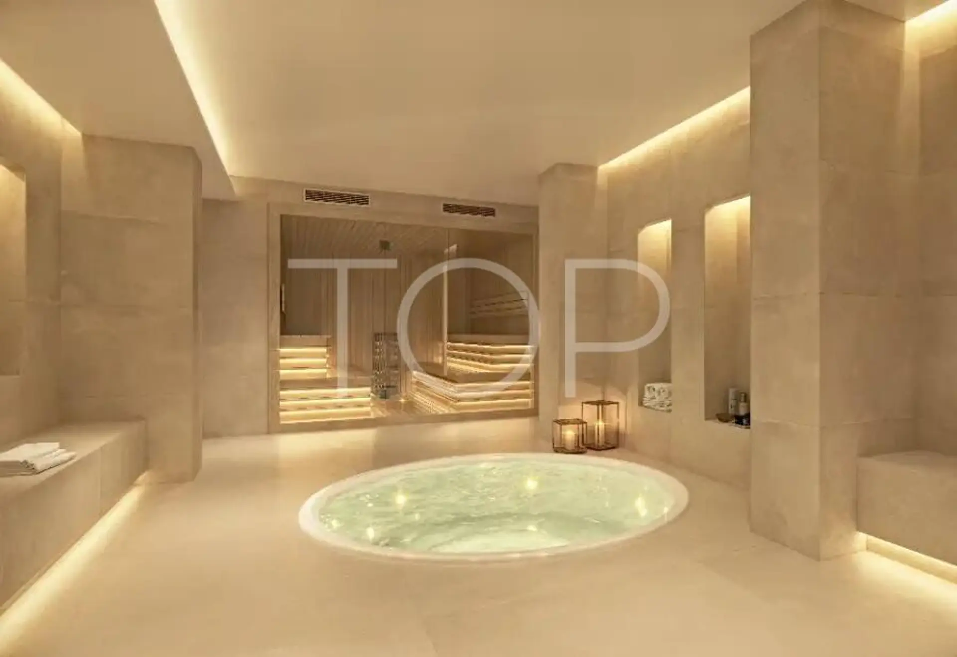 Das moderne und funktionale Design dieser Wohnung umfasst 4 großzügige Schlafzimmer, 3 stilvolle Badezimmer, einen separaten Hauswirtschaftsraum sowie einen weitläufigen Wohnbereich mit Lounge, Essbereich und einer hochwertigen offenen Küche. Diese helle Eckwohnung besticht durch außergewöhnliche Geräumigkeit und eine nahtlose Verbindung zwischen Innen- und Außenbereichen. Die 145 m² großzügige Terrasse verfügt über einen privaten Pool und mehrere Sitzbereiche, die zum Entspannen und Verweilen einladen. Ein idealer Ort, um das hervorragende Klima das ganze Jahr über zu genießen.