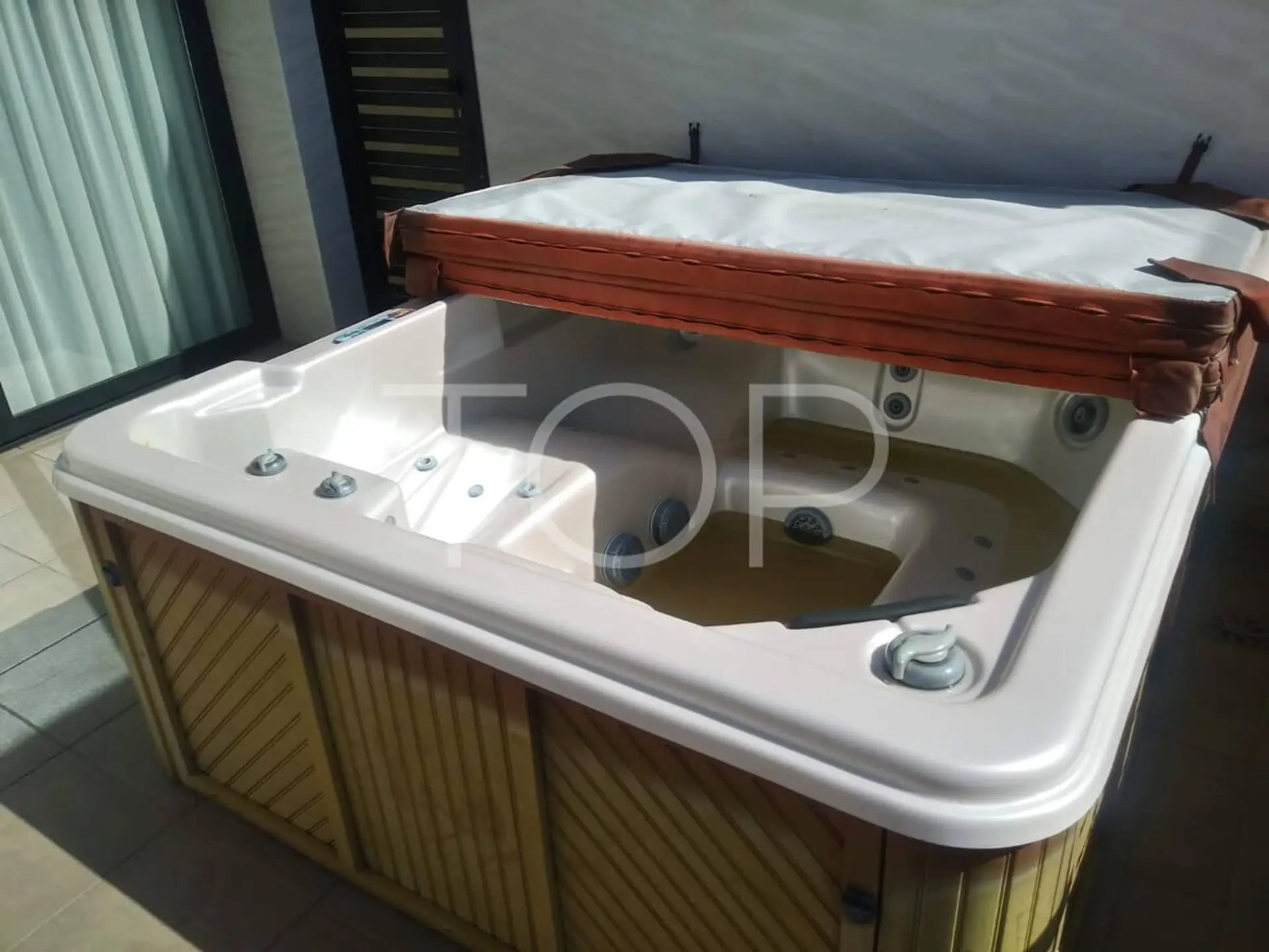 Das Objekt verfügt über drei geräumige Schlafzimmer, von denen zwei direkten Zugang zu einer beeindruckenden, nach Süden ausgerichteten Terrasse haben. Von diesem Außenbereich genießen Sie einen atemberaubenden Panoramablick auf den Ozean, die Küste und die umliegenden Hügel. Die Terrasse bietet viel Platz im Freien und ist mit einem integrierten Whirlpool ausgestattet – der ideale Ort zum Entspannen, Sonnenbaden oder um unvergessliche Sonnenuntergänge zu erleben.