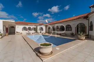 Die Hauptvilla verfügt über fünf großzügige Schlafzimmer, vier komplette Badezimmer, eine offene Küche, einen Essbereich sowie ein weitläufiges, lichtdurchflutetes Wohnzimmer. Weitere Ausstattungsmerkmale sind ein Technikraum und ein flexibel nutzbarer Raum, der als Fitness- oder Freizeitbereich dienen kann. Zudem verfügt die Immobilie über eine Doppelgarage mit Stauraum sowie über eine große, nach Süden ausgerichtete Terrasse mit Swimmingpool, die Privatsphäre und ganzjährigen Komfort gewährleistet.