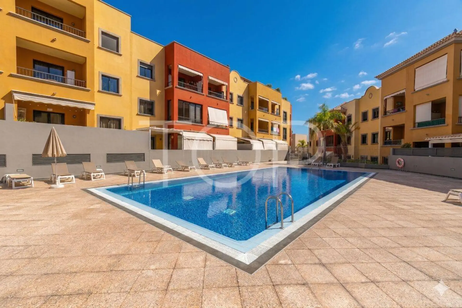 Die Wohnanlage bietet hervorragende Gemeinschaftsbereiche, darunter einen Pool, der sich perfekt eignet, um das ganzjährig angenehme Klima zu genießen. Zudem gehört ein Stellplatz zur Immobilie, der zusätzlichen Komfort und Sicherheit bietet.
