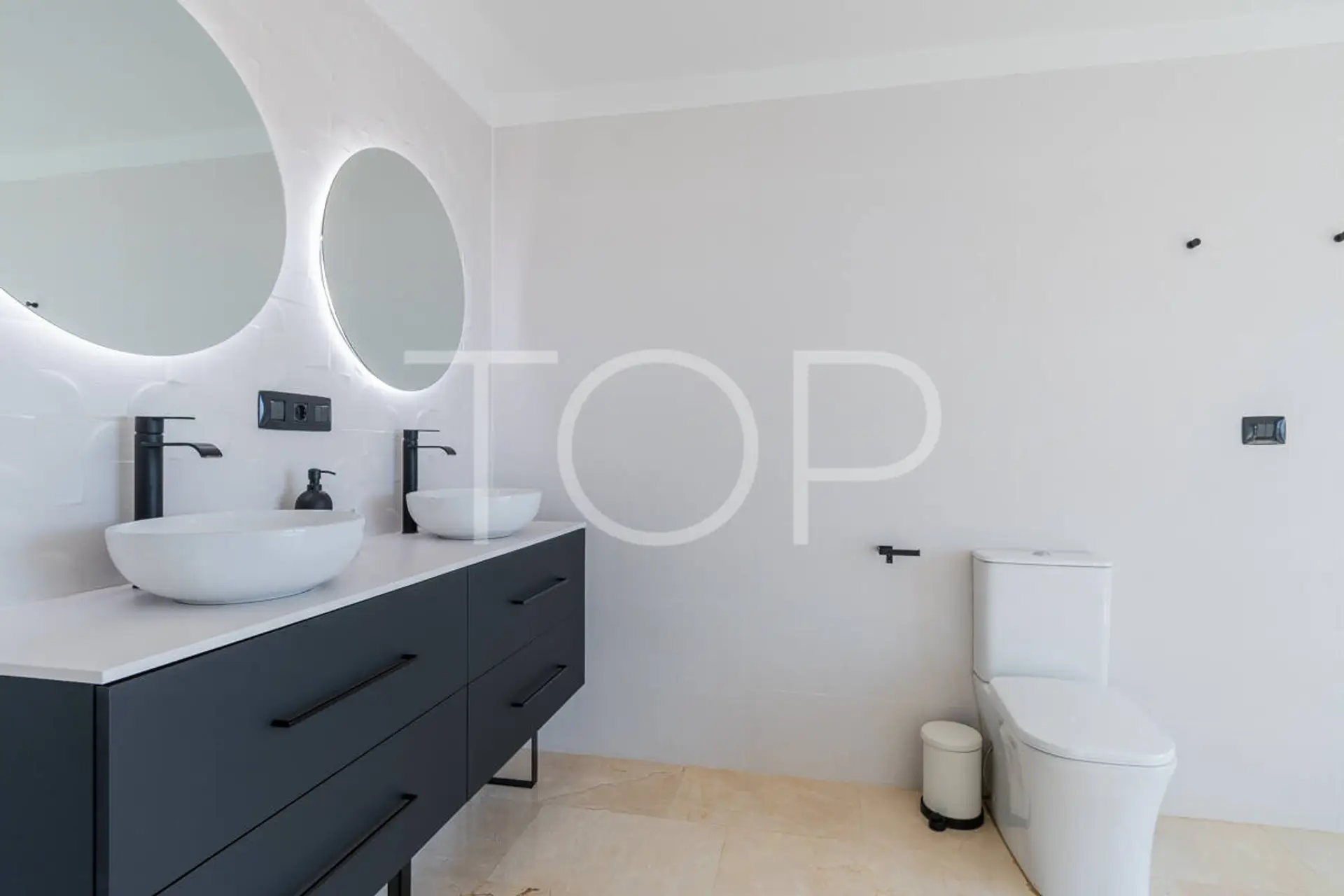 Hochwertige Materialien, sorgfältige Beleuchtung und minimalistische architektonische Details verleihen der Immobilie einen exklusiven und zeitlosen Charakter.