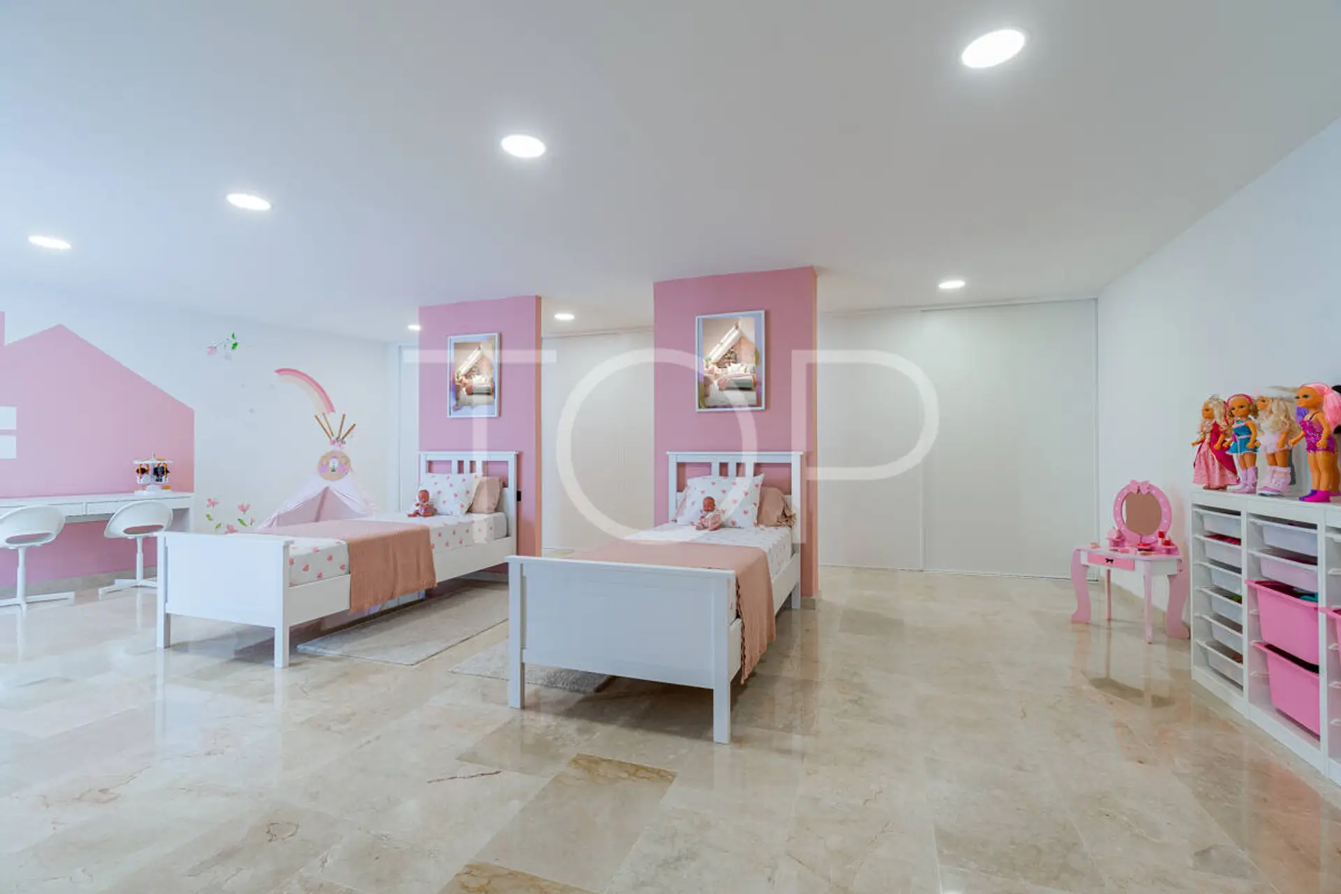 In den oberen Etagen befindet sich der Schlafbereich, bestehend aus vier großzügigen Schlafzimmern, jedes mit eigenem Bad und privater Terrasse. Das Hauptschlafzimmer besticht durch sein elegantes Design, sein Ankleidezimmer und seine private Terrasse, von der aus Sie den Sonnenaufgang über dem Atlantik beobachten können.