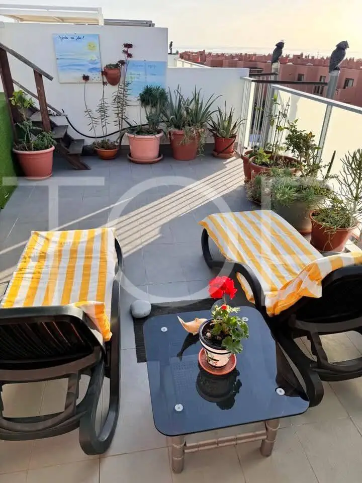 Entdecken Sie dieses schöne Duplex-Penthouse in der begehrten Küstenlage von La Tejita, Granadilla de Abona, nur 540 Meter vom Strand entfernt und in unmittelbarer Nähe zu allen Einrichtungen. Die Immobilie befindet sich in einer modernen Wohnanlage aus dem Jahr 2018 und bietet eine elegante Kombination aus Komfort, Privatsphäre und Küstenleben.