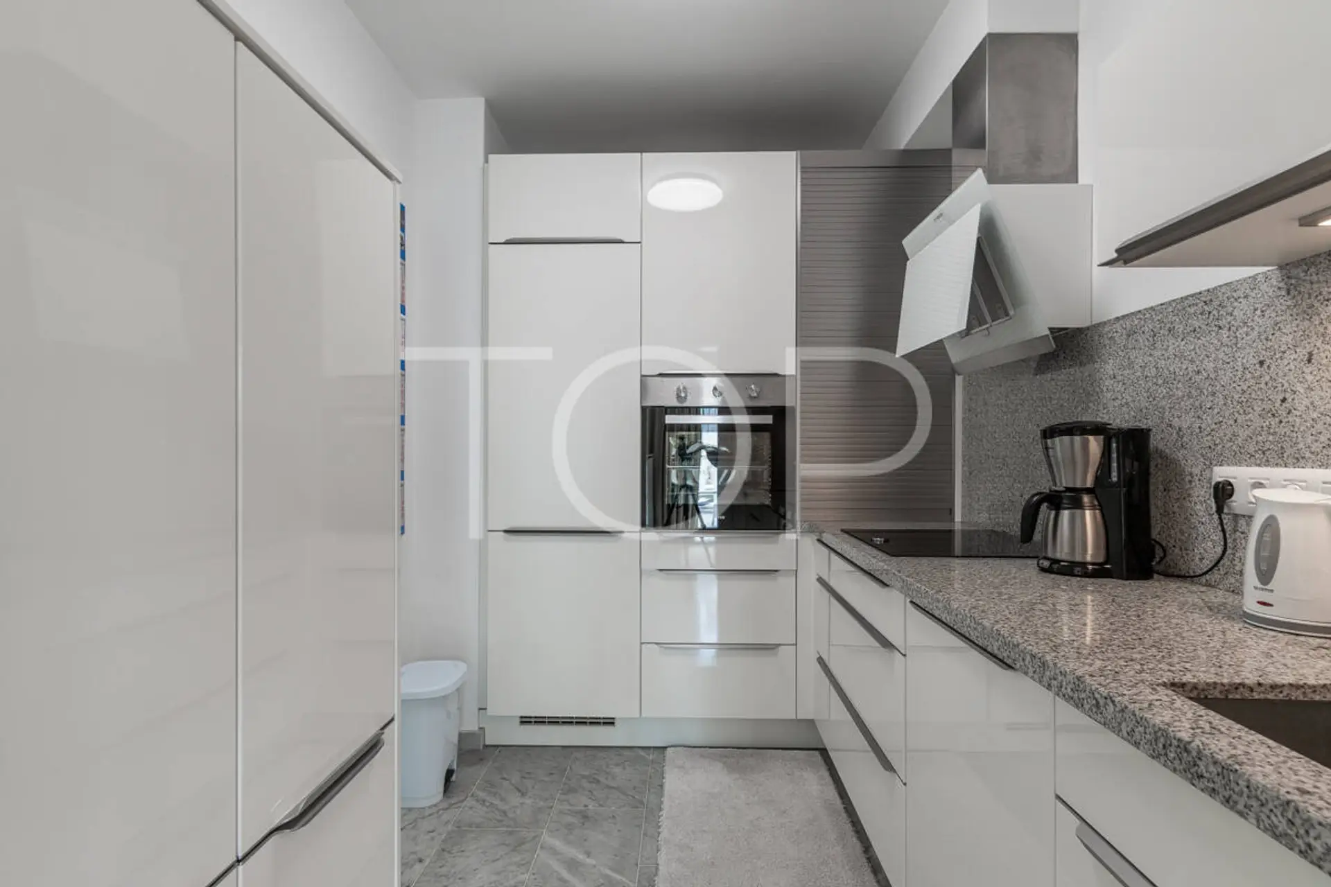 Im Untergeschoss befindet sich das Herzstück des Hauses: das lichtdurchflutete Wohn- und Esszimmer mit Cheminee, kleinem Bürobereich und direktem Zugang zu Garten, Terrassen und Pool. Von nahezu allen Räumen genießen Sie den fantastischen Meerblick. Die Innenküche wird durch eine Außenküche im Wintergarten ergänzt – ideal für gesellige Abende. Ein Gäste-Apartment mit separatem Garten-Zugang bietet flexible Nutzungsmöglichkeiten. Werkstatt, Waschküche und Gäste-WC komplettieren das Untergeschoss. Der gesamte Strombedarf wird mittels einer eigenen Solaranlage abgedeckt.