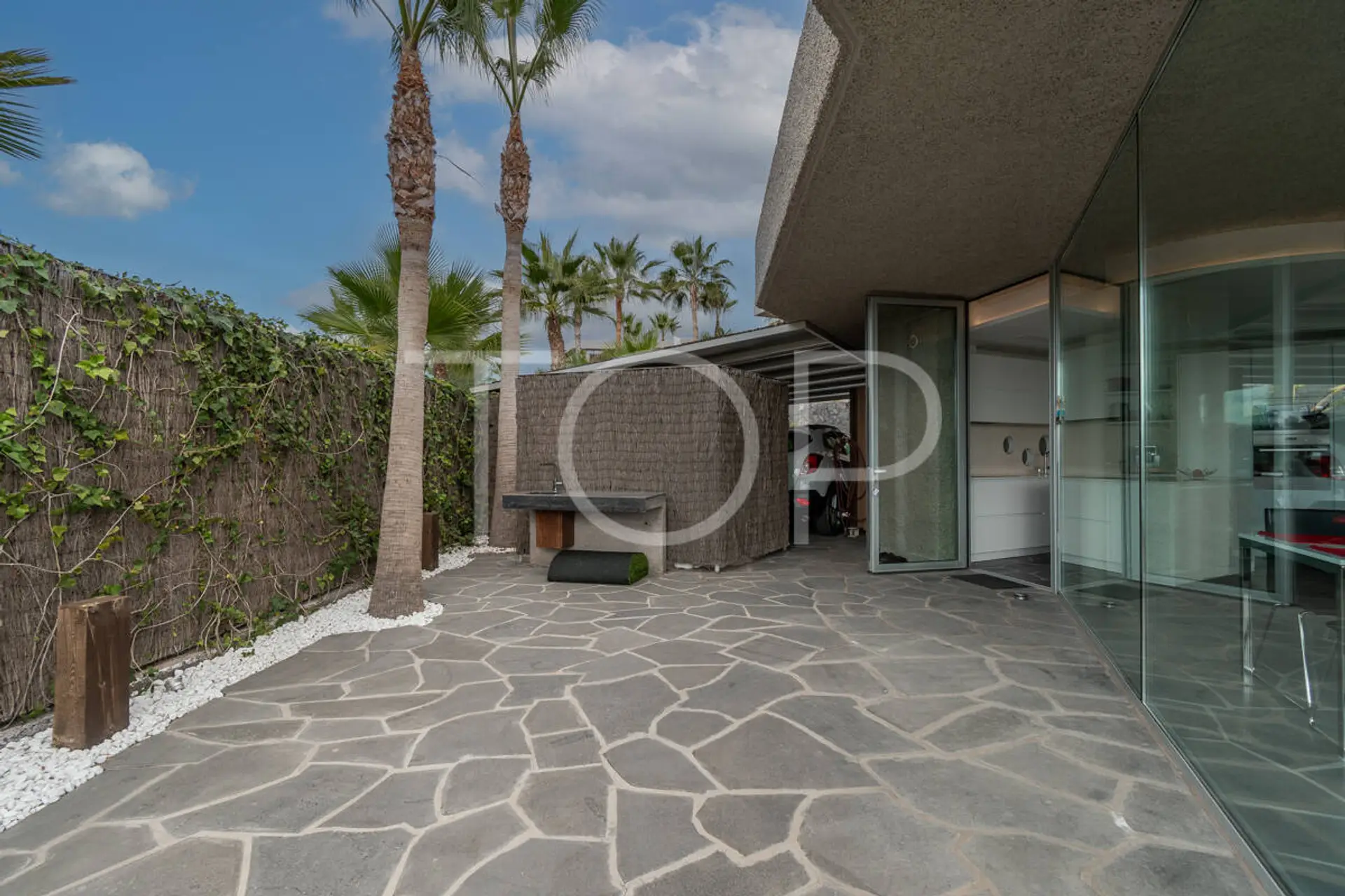 El exterior seduce con una gran terraza de madera, zonas ajardinadas de fácil mantenimiento e iluminación integrada que aporta un ambiente muy agradable. La piscina infinita privada está actualmente cubierta y utilizada como terraza adicional, aunque puede reactivarse en cualquier momento. Gracias a su orientación ideal, la propiedad disfruta de sol todo el día, tranquilidad y total privacidad.